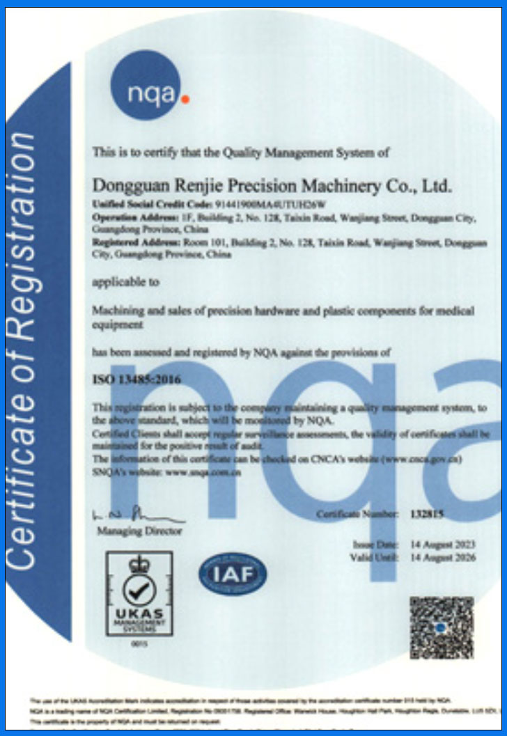 In August 2022, we established our International Trade Department, officially entering overseas markets. Renjie obtained ISO 9001 certification in 2022 and ISO 13485 medical certification in 2023. We began partnerships with clients in Europe, America, and Southeast Asia, exporting precision components globally.